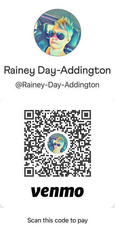 Methods of payment when booking on my website is "PayPal"; if you do NOT use this method, Rainey takes Venmo & Zelle; QR codes below; just email Rainey when you do!